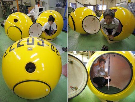 Segundo a empresa, além de servir como salva vidas, a cápsula também pode ser usada como casa de brinquedos para as crianças. Bom…apesar da ideia ser boa, penso nas famílias que possuem mais de 4 membros… Pelo visto, terão que comprar 2 esferas para poder salvar todo mundo.